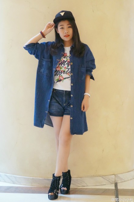 活力四射的夏季怎么能少了牛仔元素,最近在韩国的女装网站JOAMOMG官网上淘了件长款的牛仔外套,搭配热裤露脐T和棒球帽,完全我的style 穿搭博文O2015.06.15【joamom官方中文主页: O网页链接】