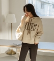 몽글몽글한 니트 텍스쳐의 레터링 후드 니트
