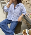 코튼 레이스+스트라이프로 담백하면서 여리한 감성의 셔츠