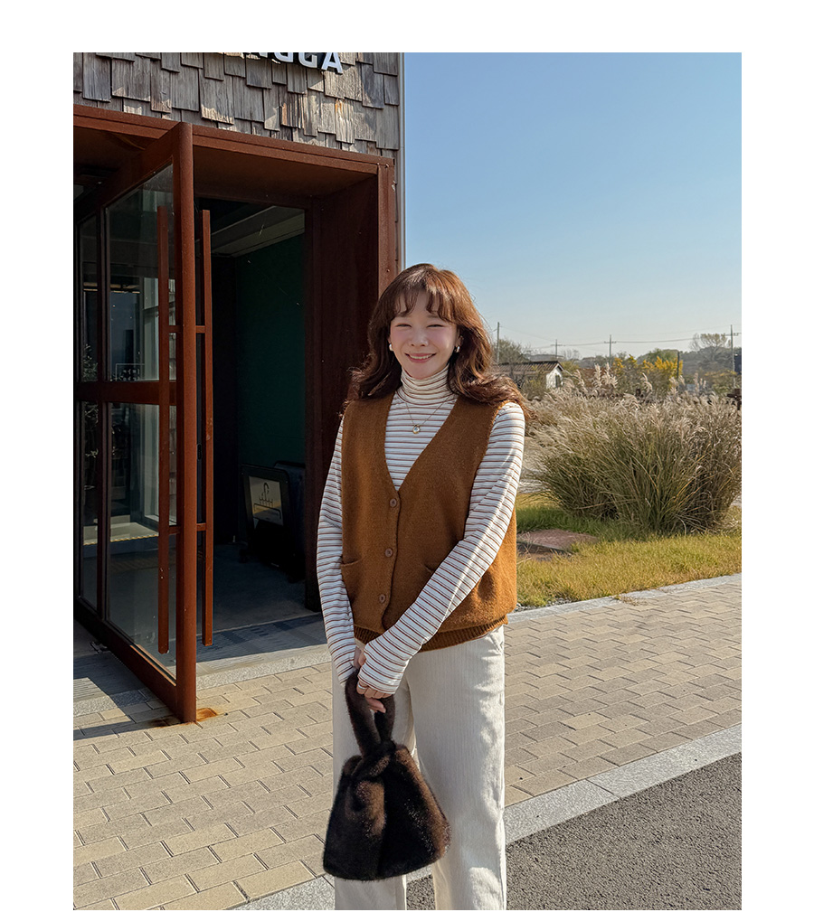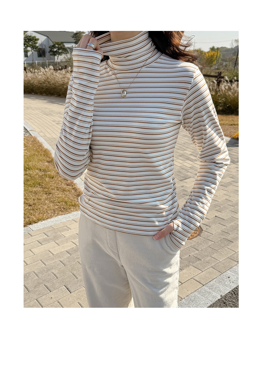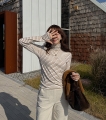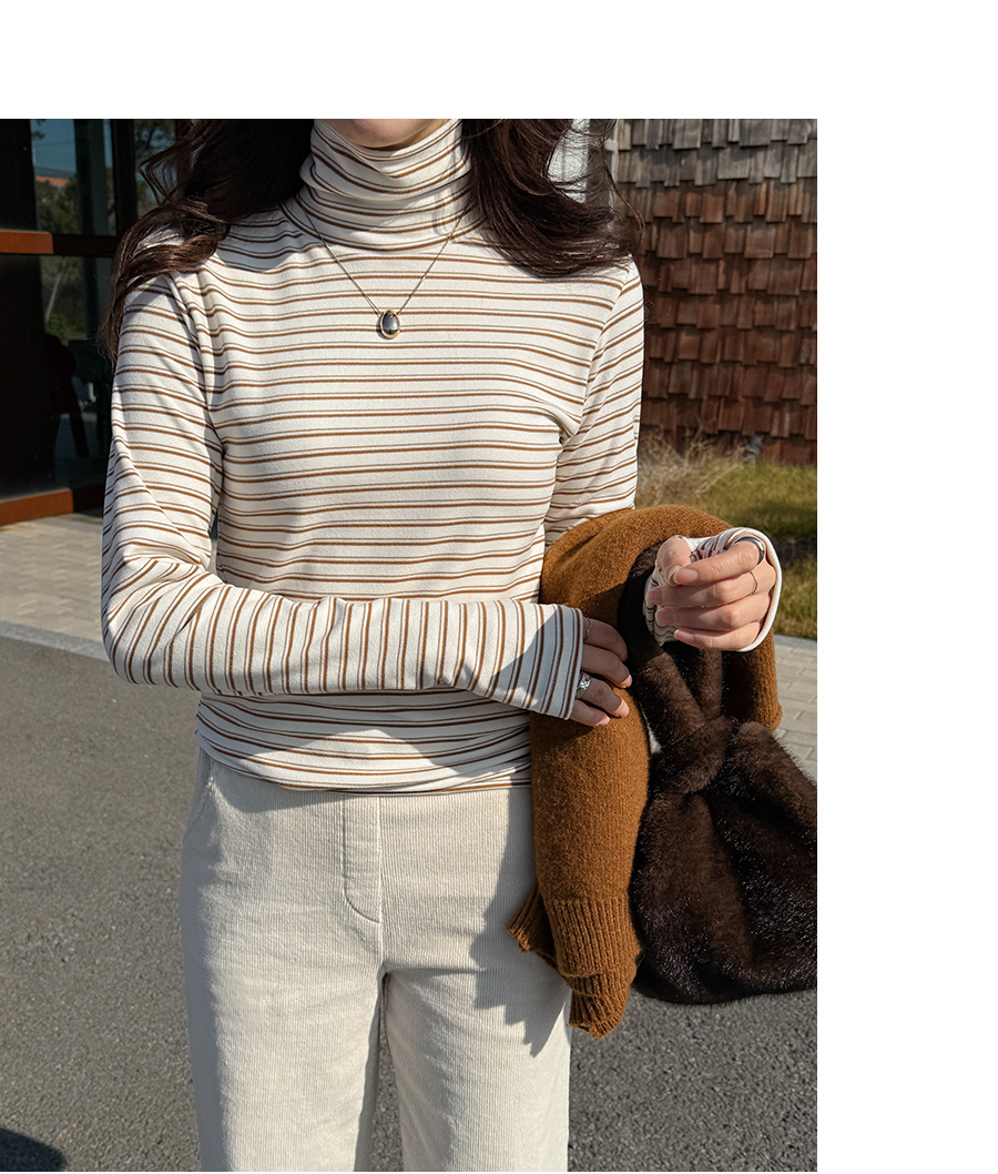 배색이 들어간 워머 디자인의 폴라 티셔츠에요