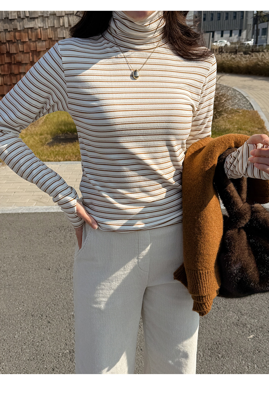✓ 조이지 않고 찬바람을 막아주는 폴라 넥
