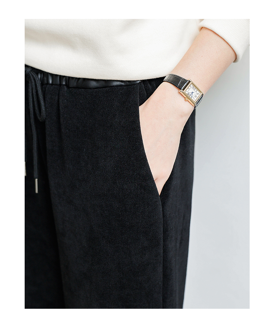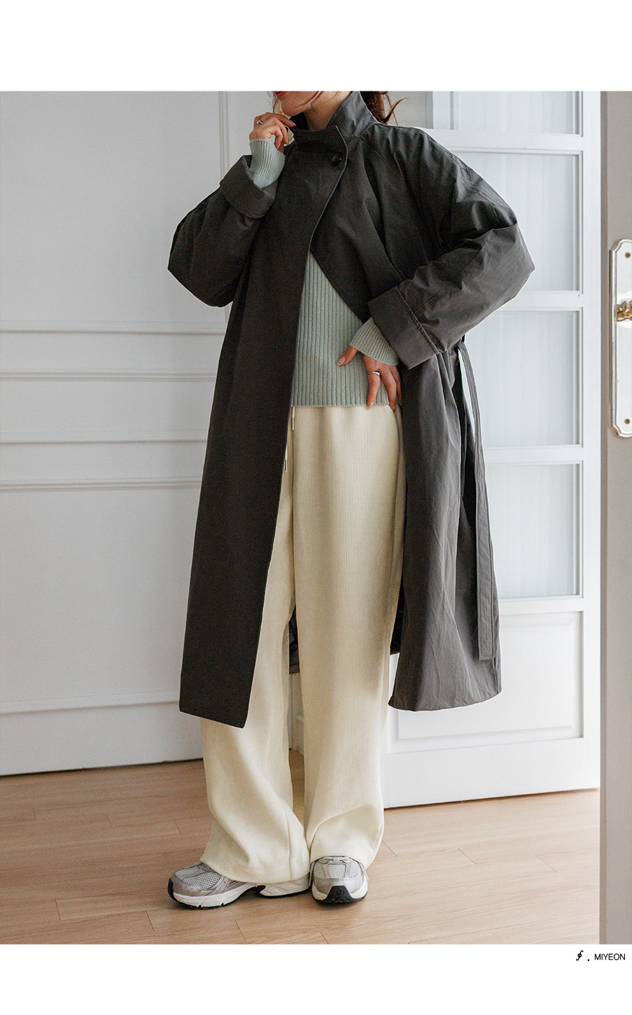 ✓ 멋스러운 레더 소재 배색 허리 디테일