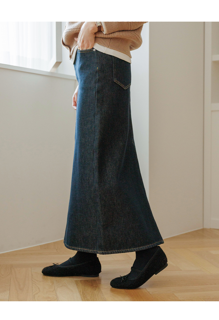 기모 데님 롱 스커트에요