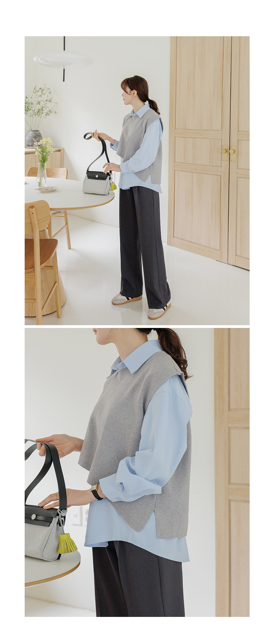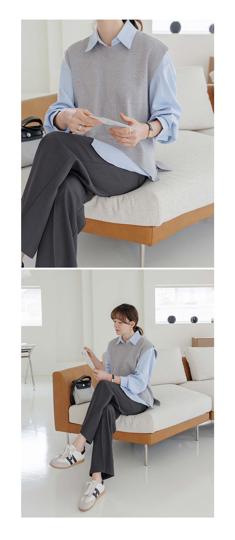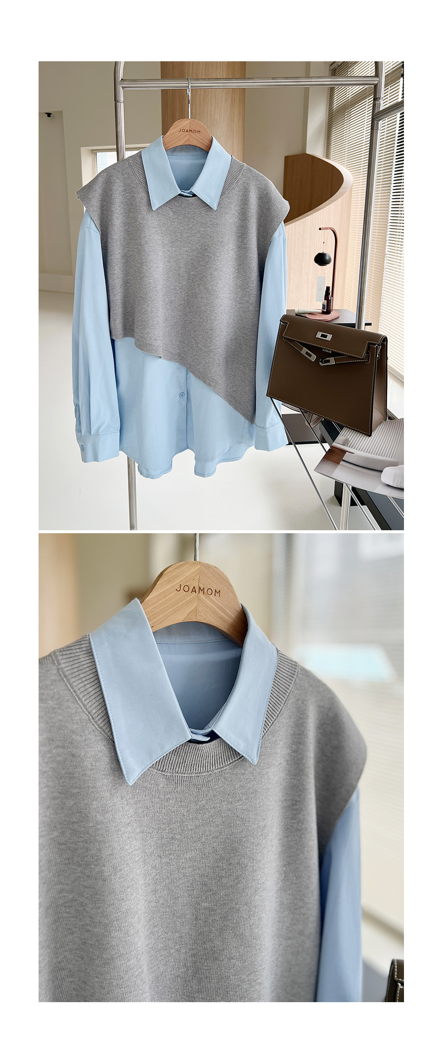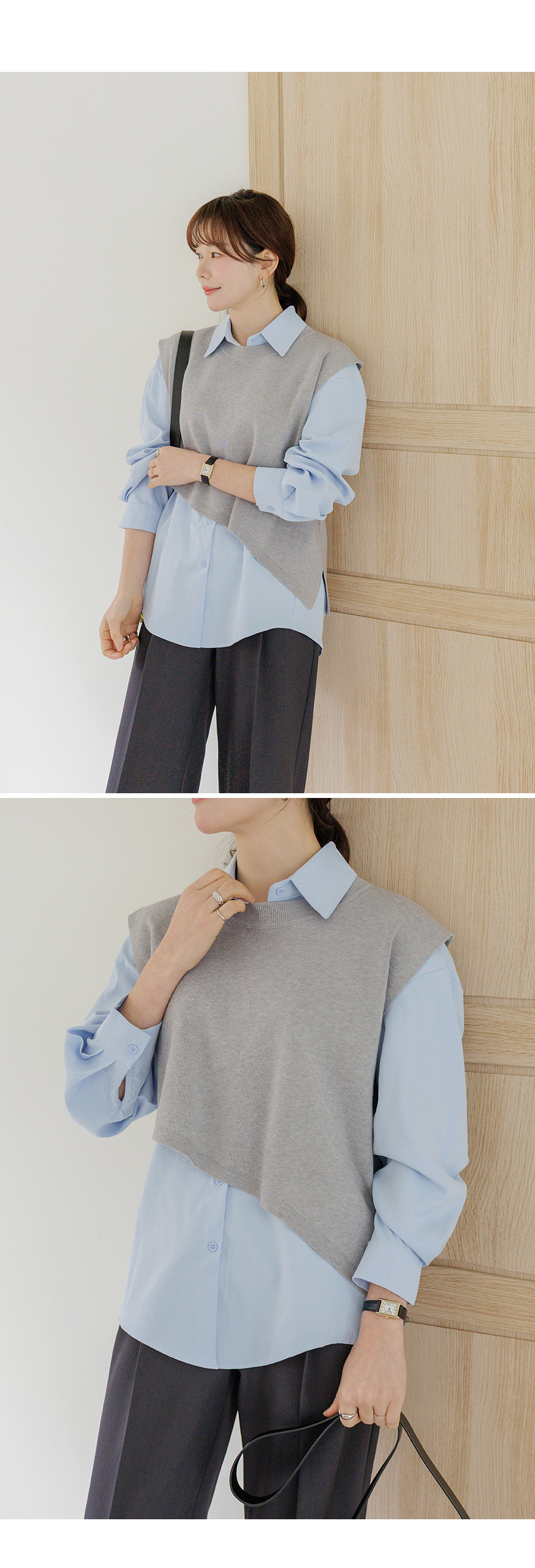 조끼 레이어드 디자인으로 단독 착용으로 스타일 완성