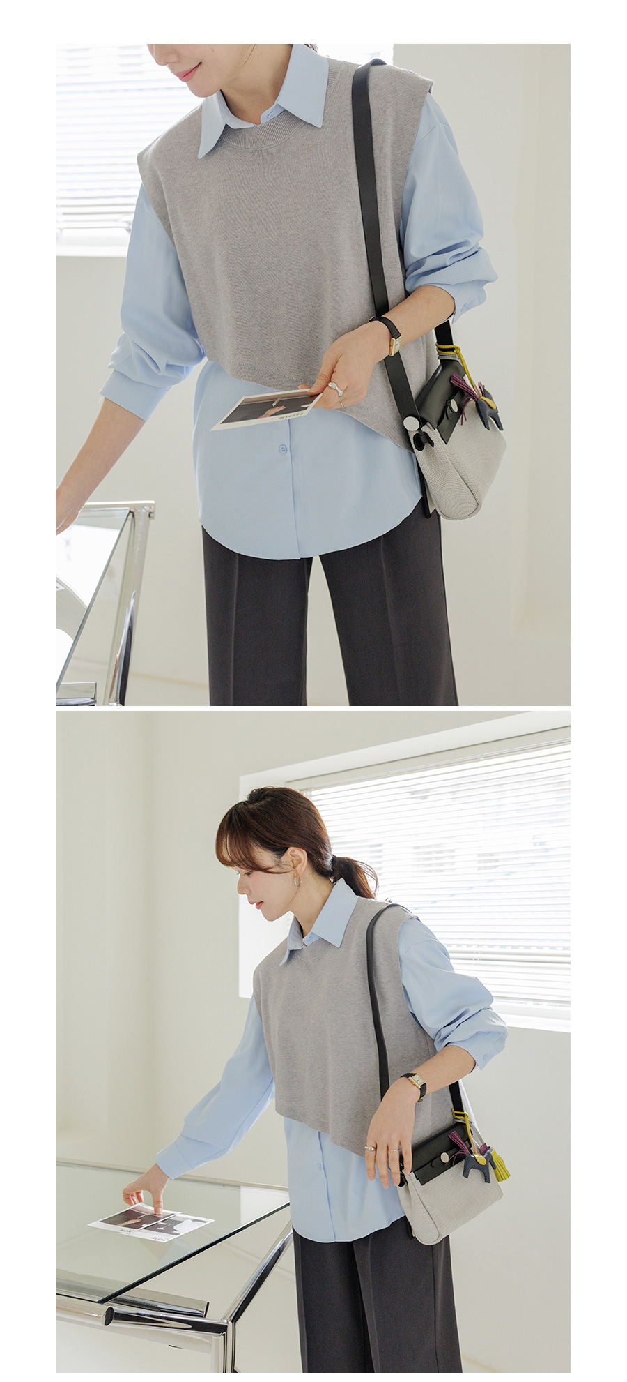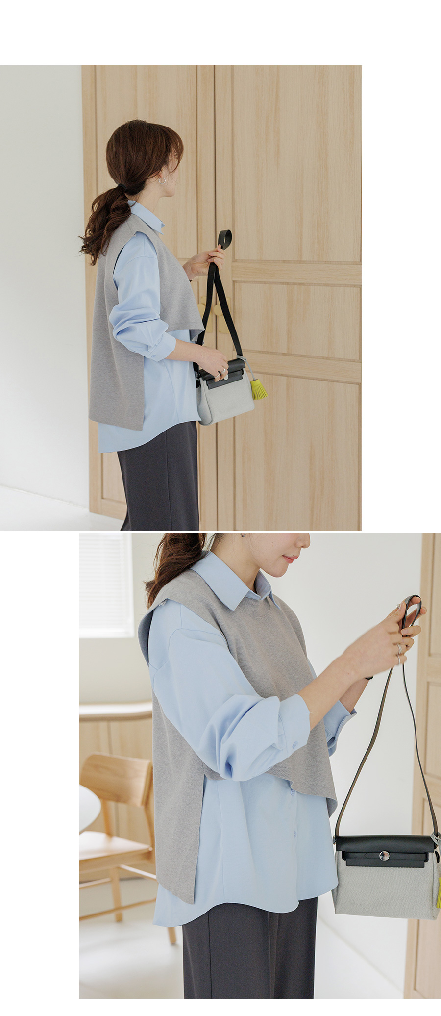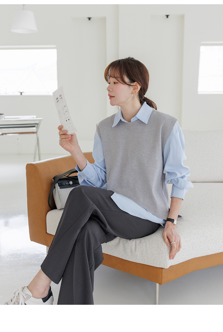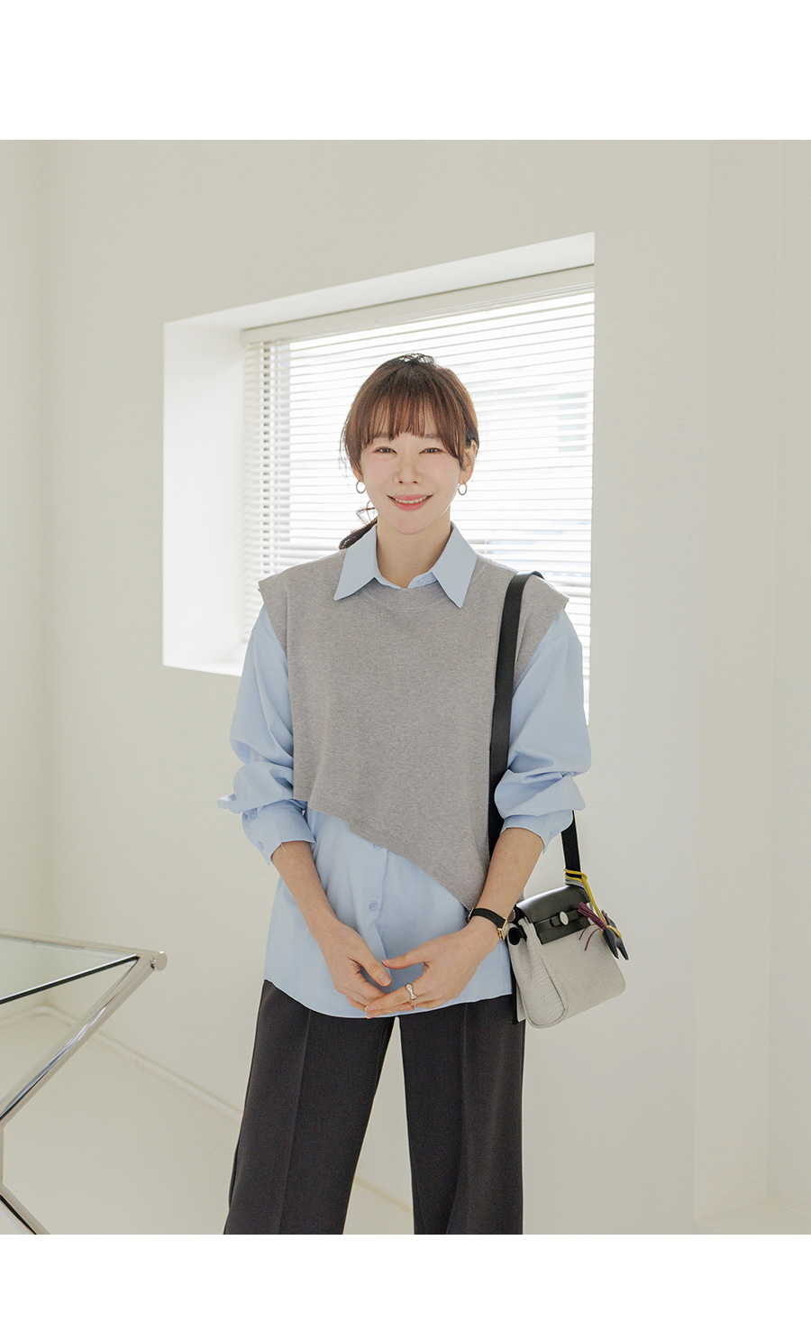 조끼 레이어드 디자인으로 단독 착용으로 스타일 완성
