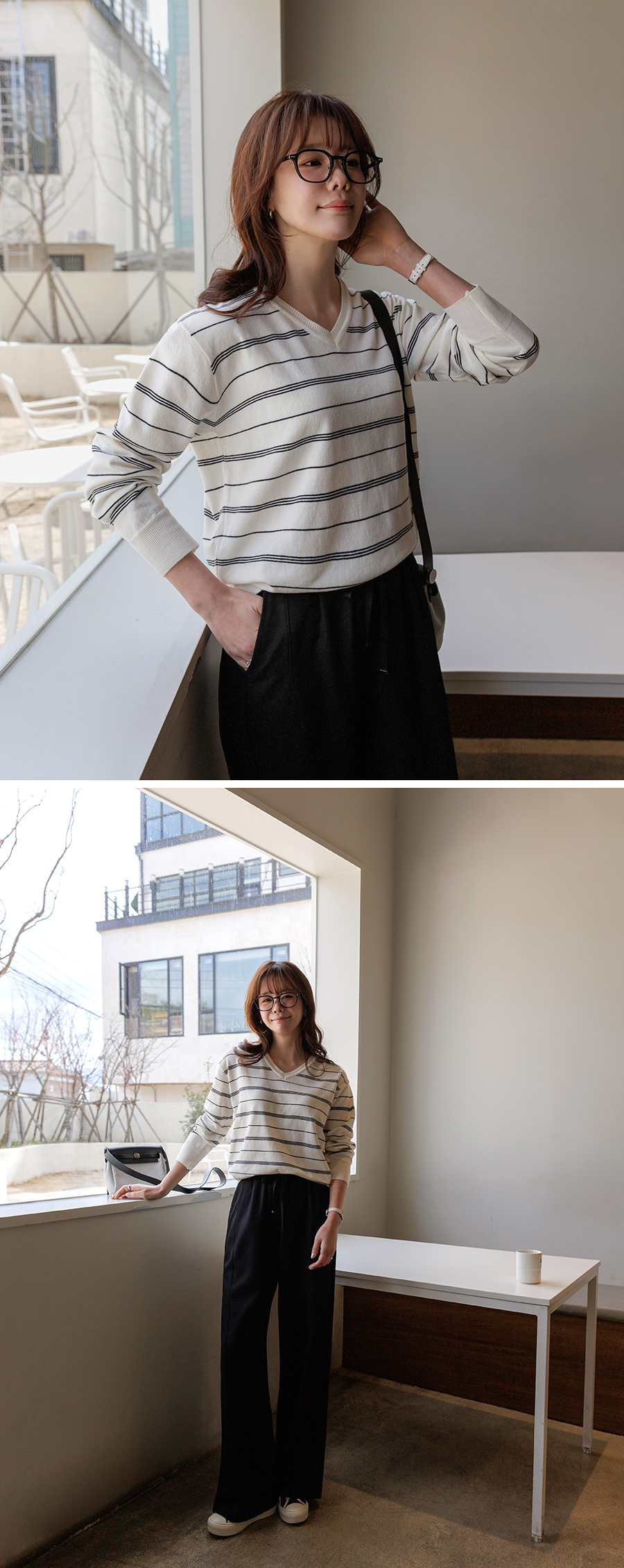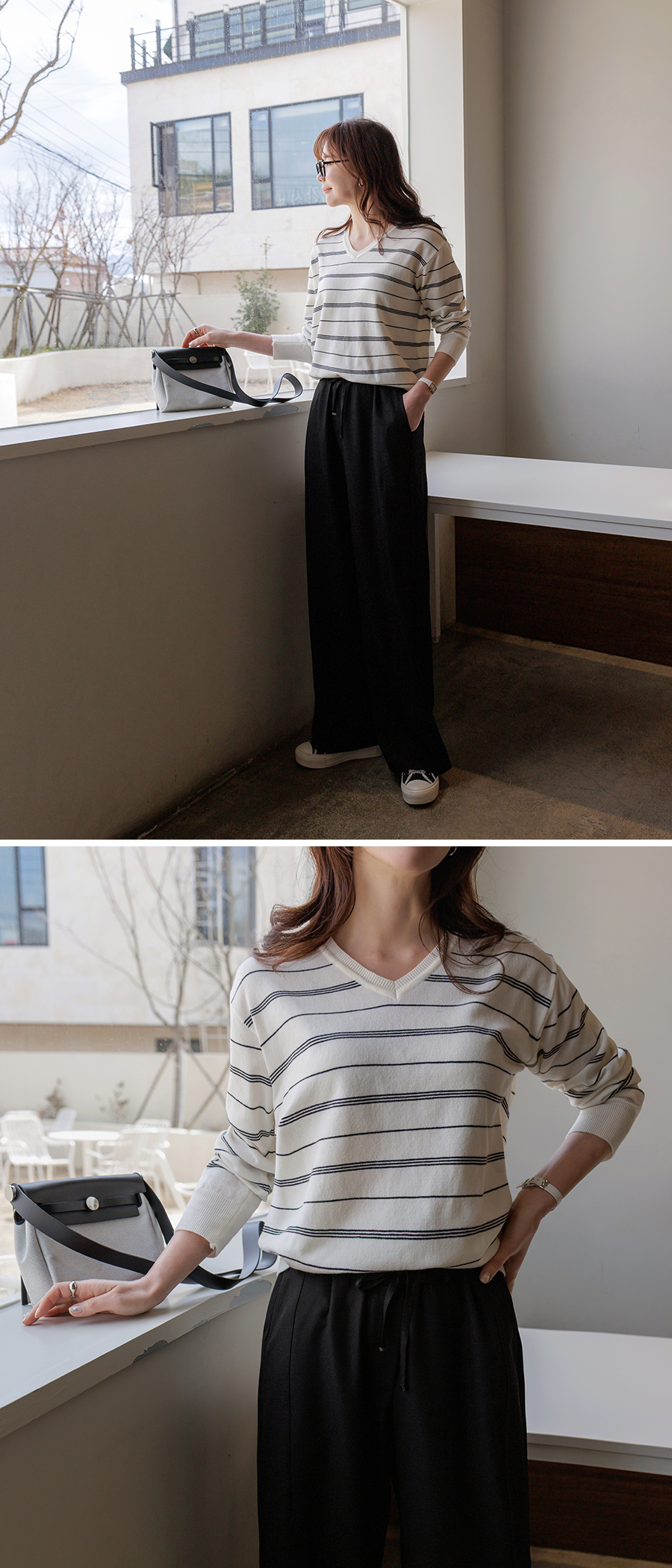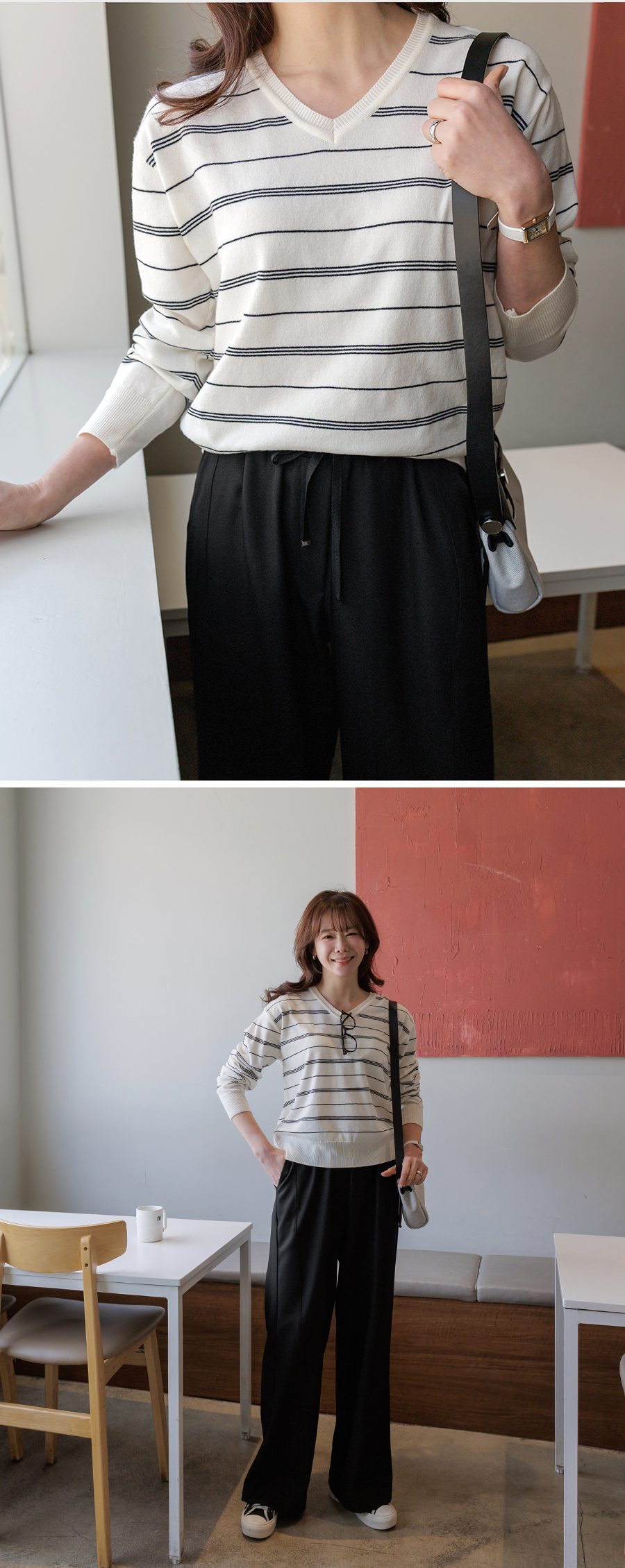 단정한 무드의 스트라이프 니트