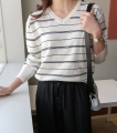 安妮条纹V领针织衫