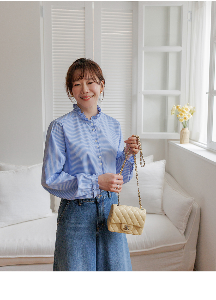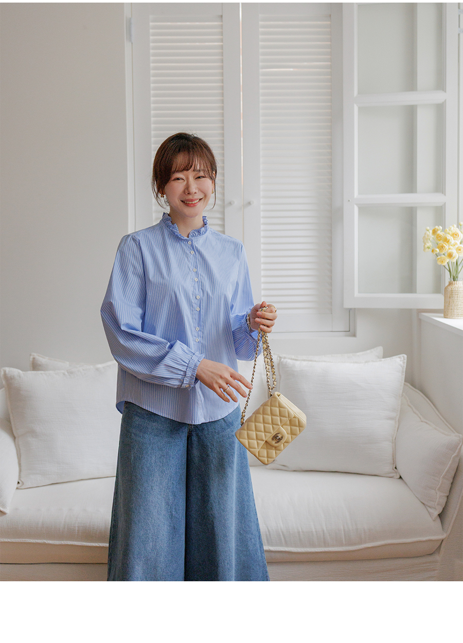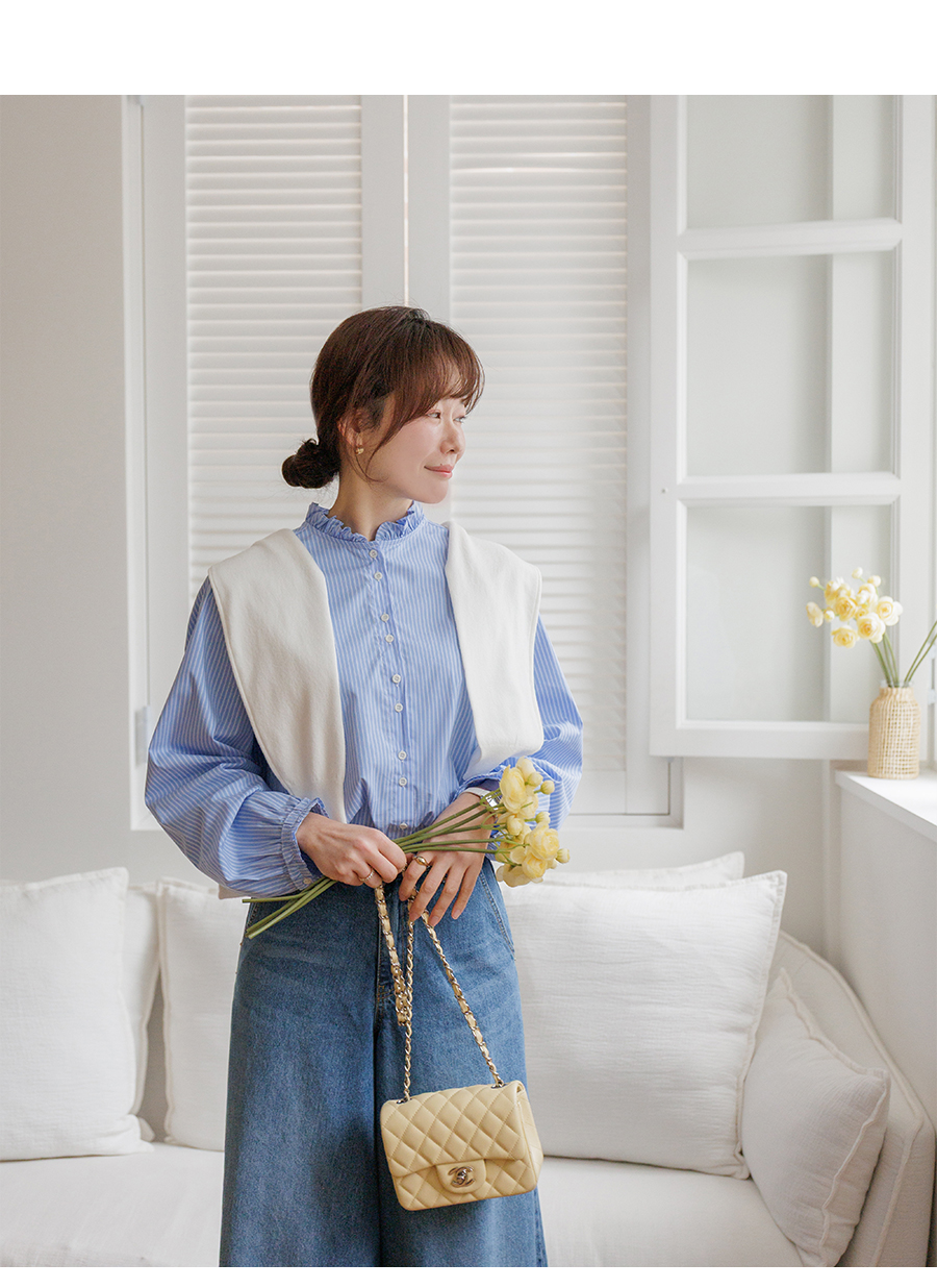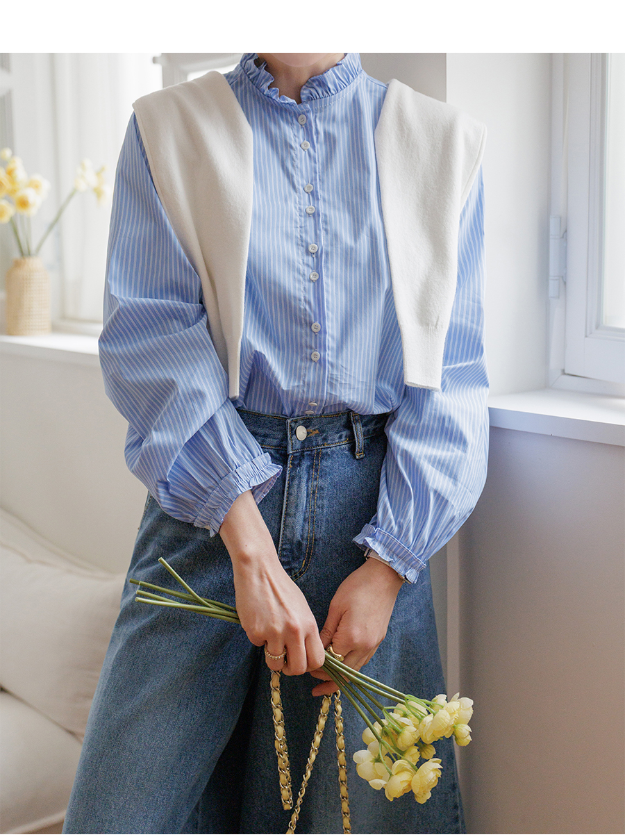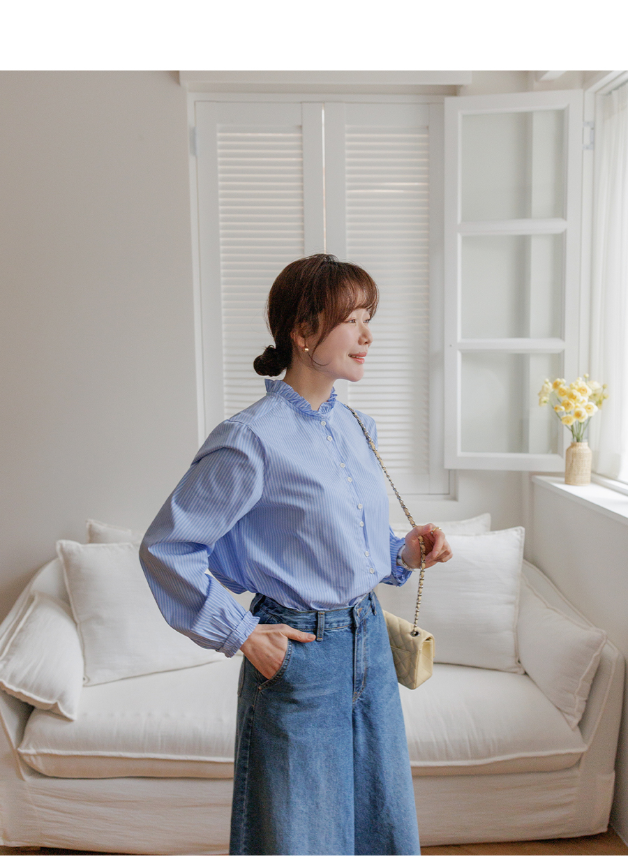 네크라인 프릴 디테일로 러블리한 무드 완성