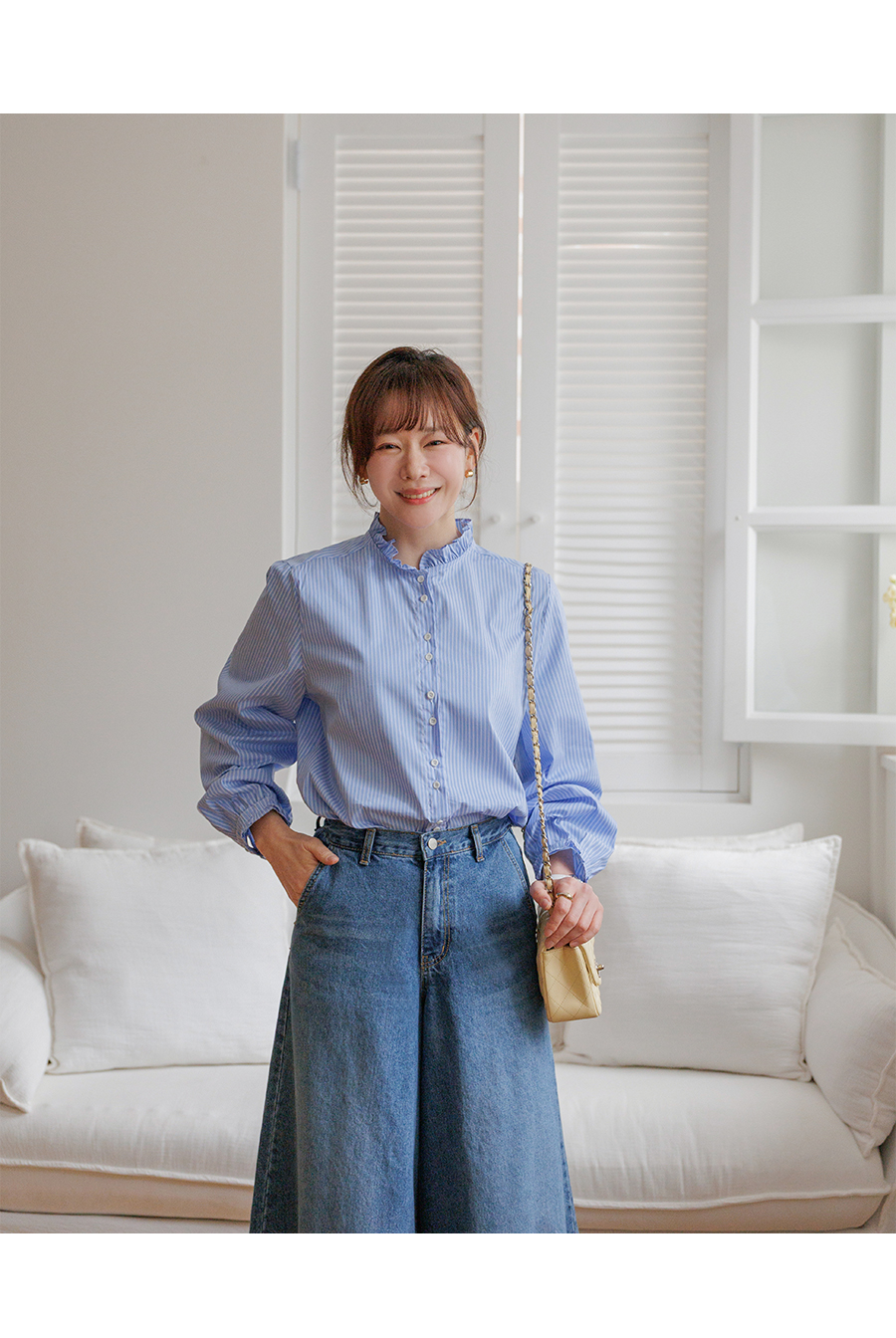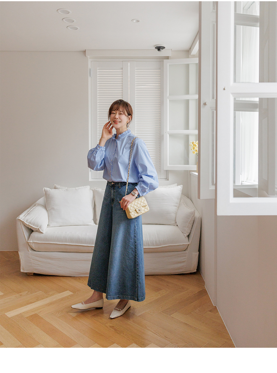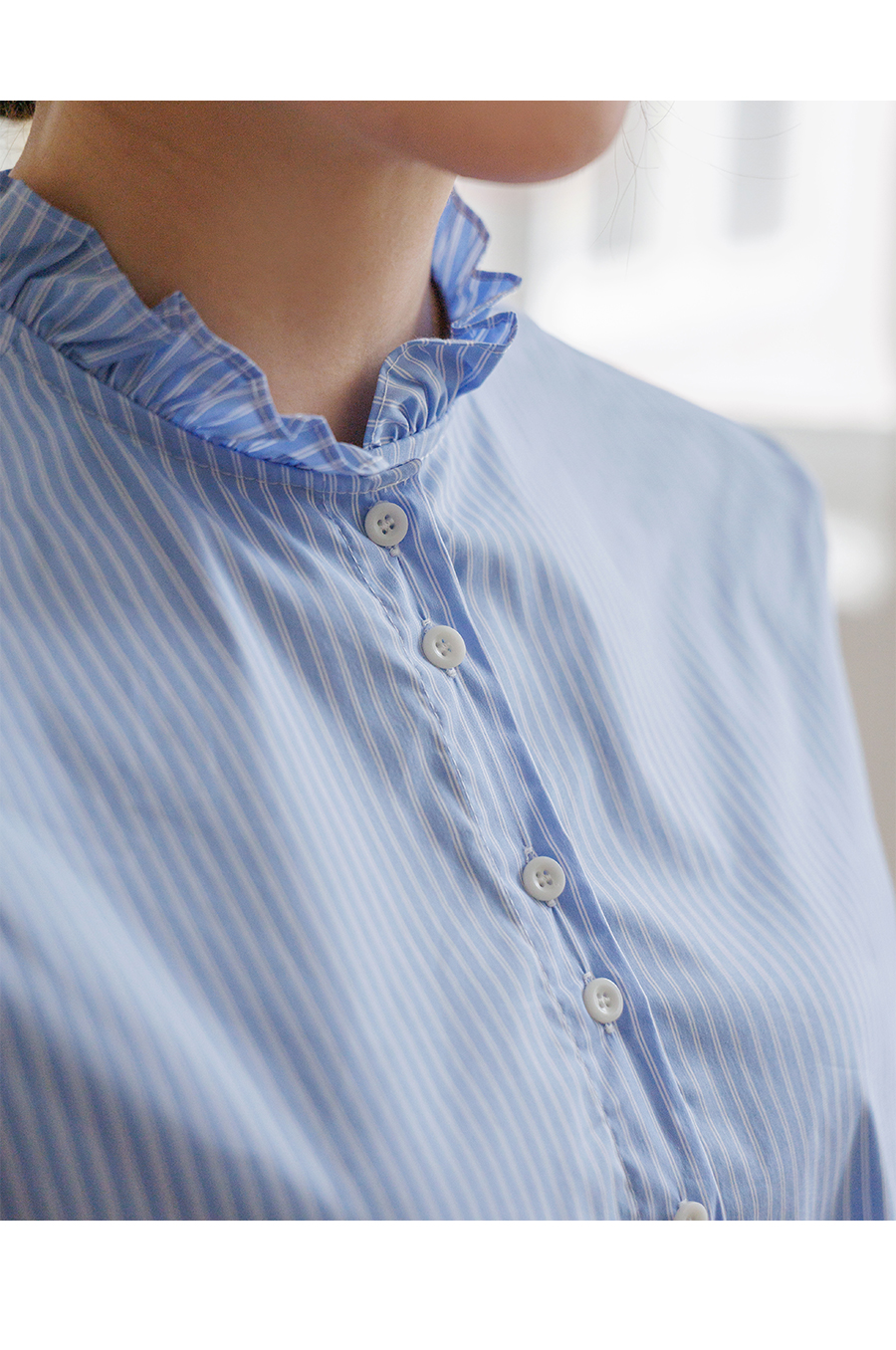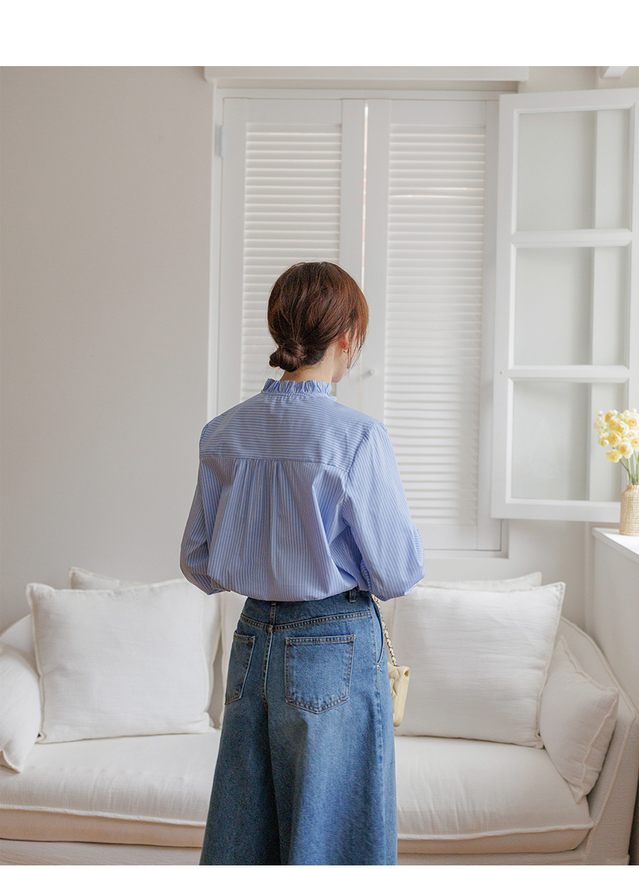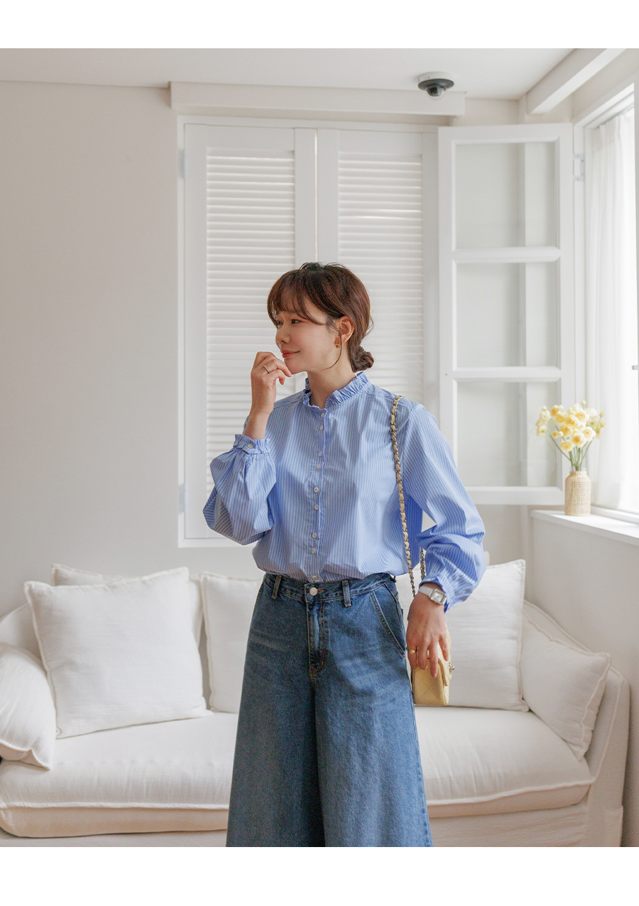 네크라인 프릴 디테일로 러블리한 무드 완성