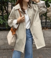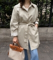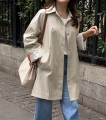 소매 스트라이프 배색으로 포인트를 준 세련된 하프 트렌치