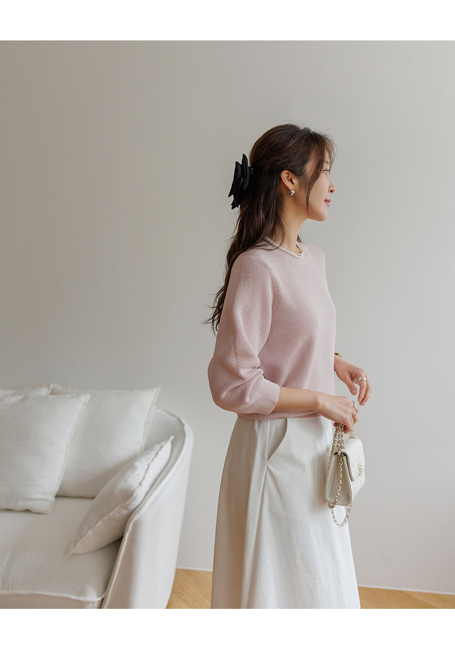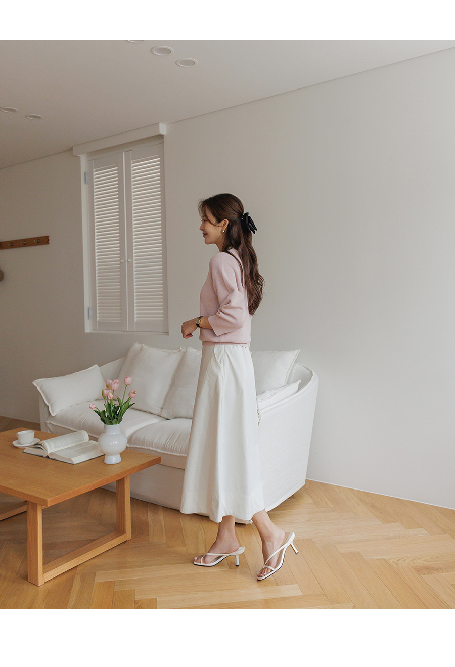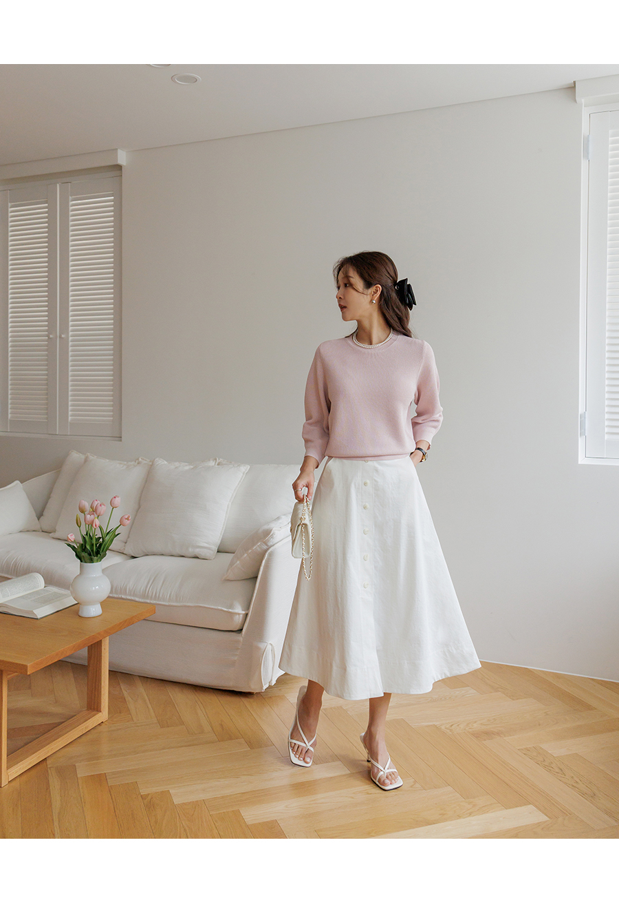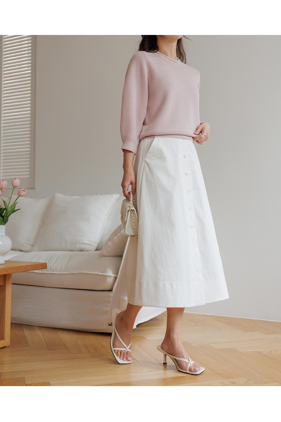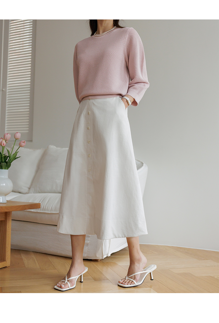 깔끔한 A라인의 페미닌한 무드의 스커트