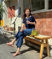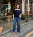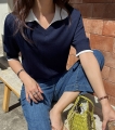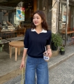배색 카라 포인트로 산뜻한 여름 코디 완성