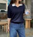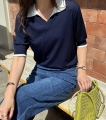 배색 카라로 시선을 끄는 포인트, 한 벌로 완성하는 썸머니트