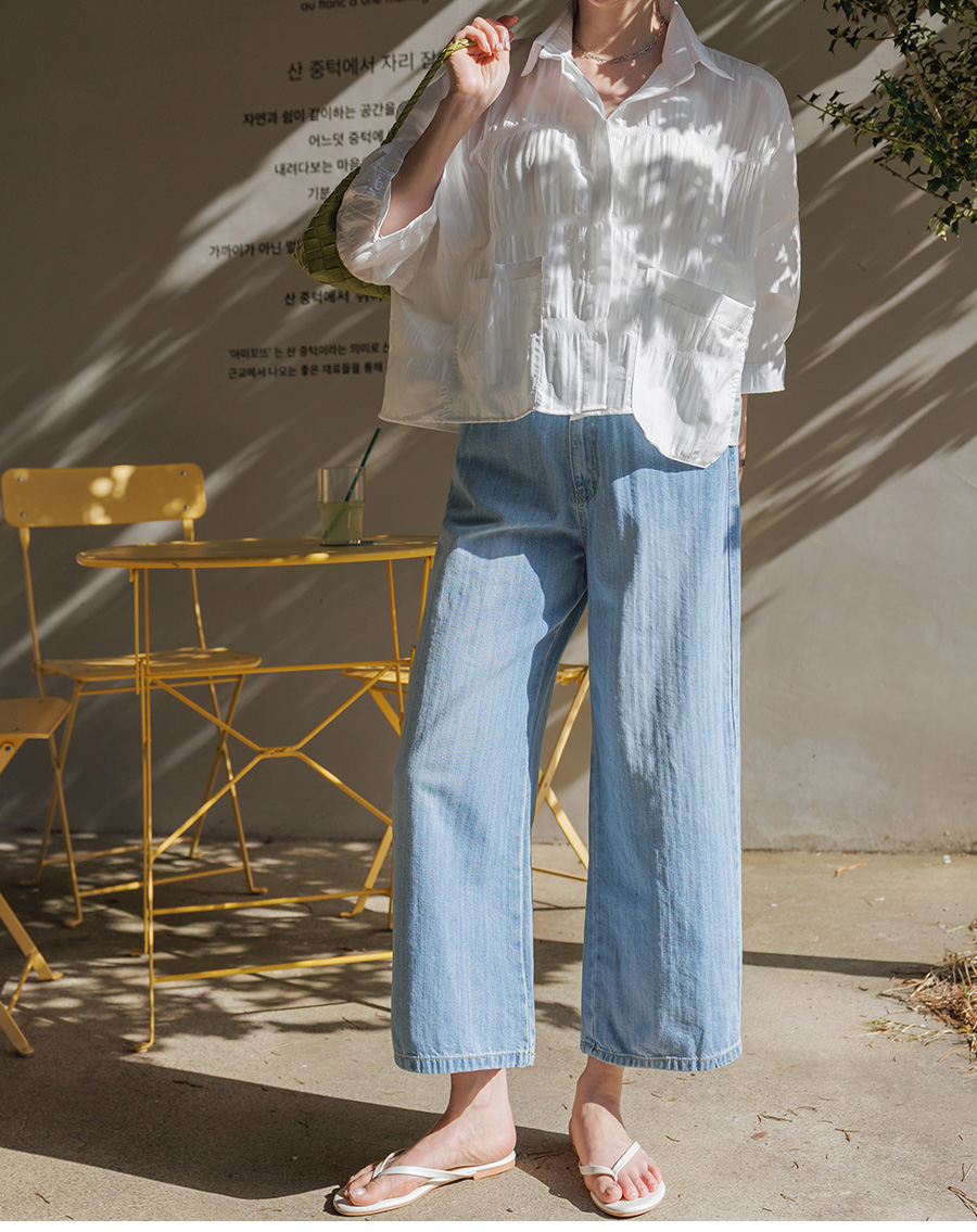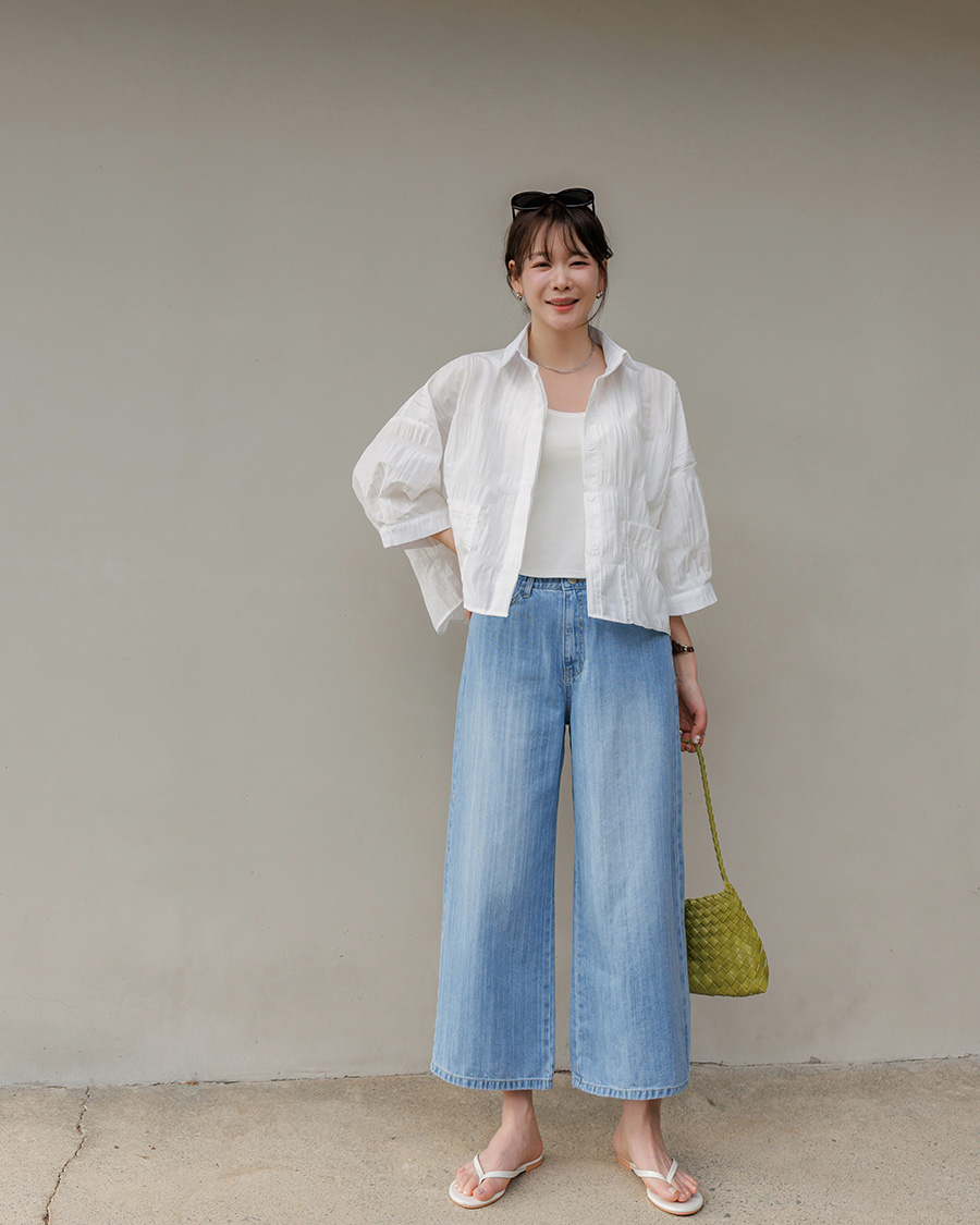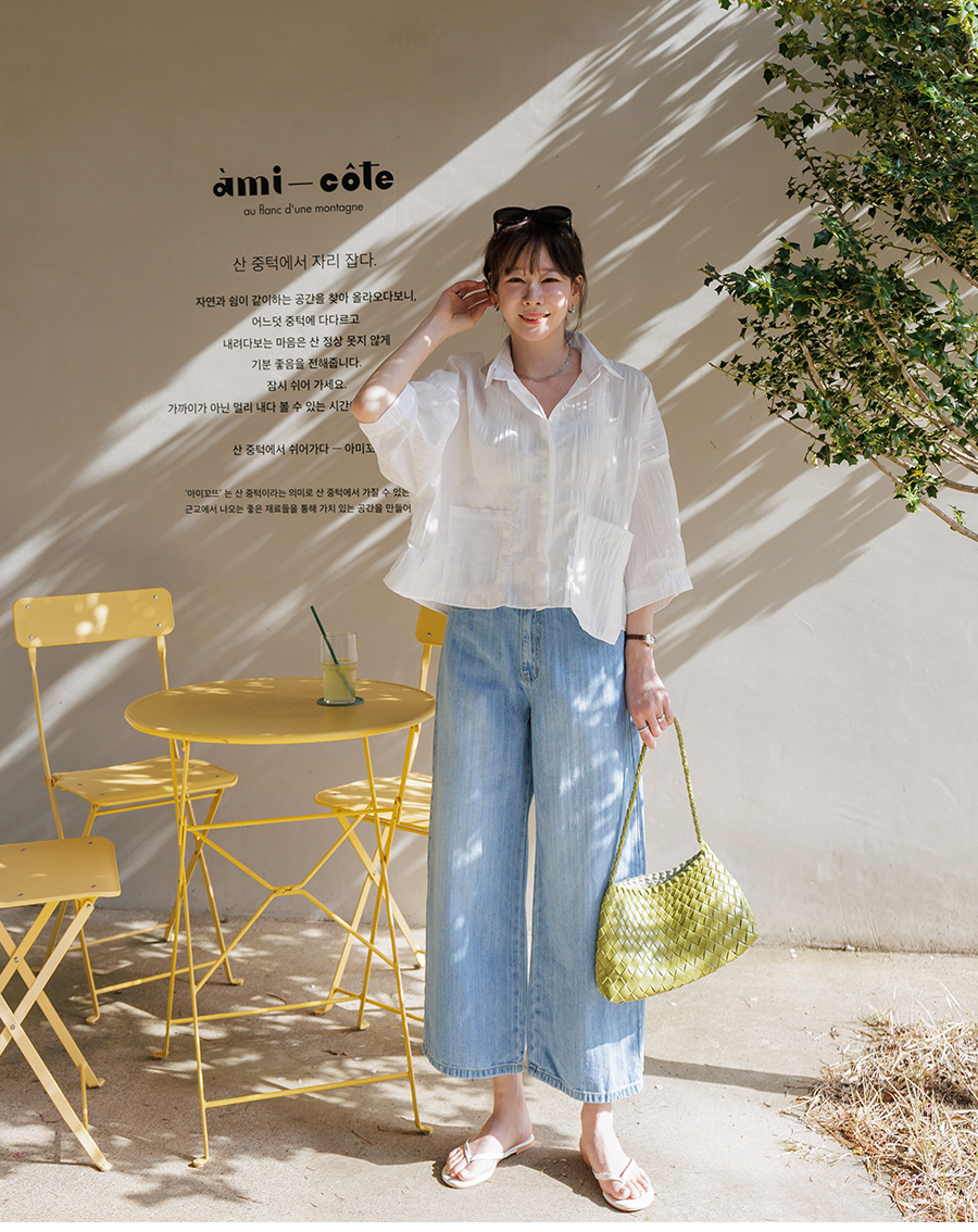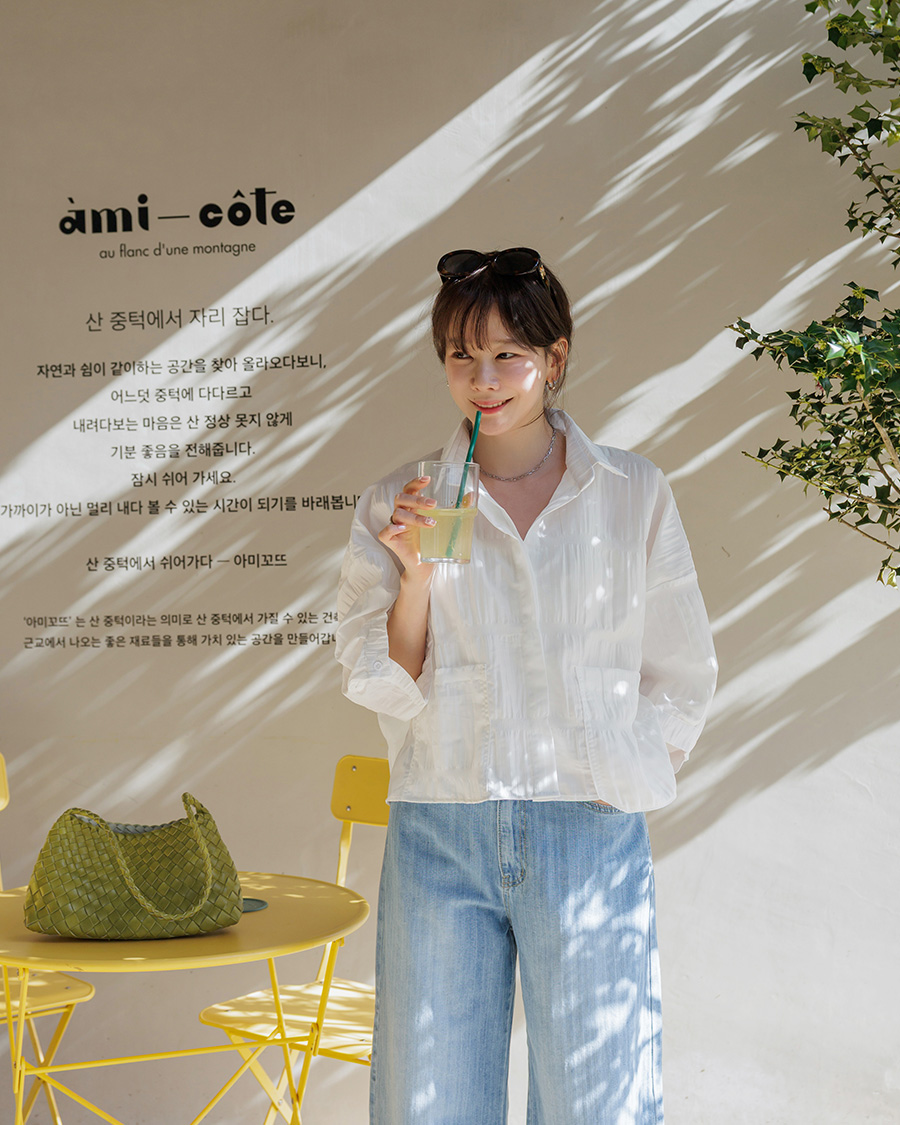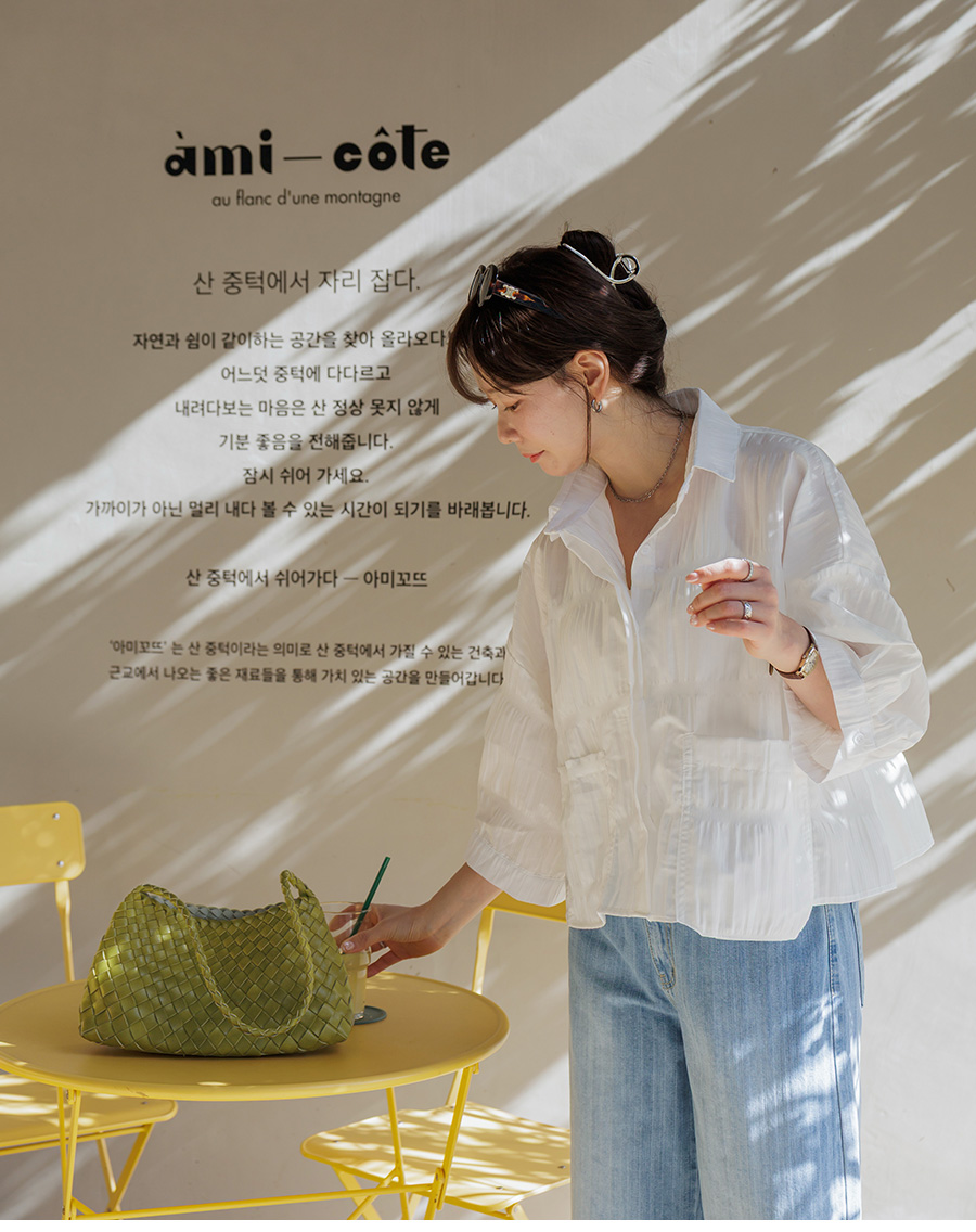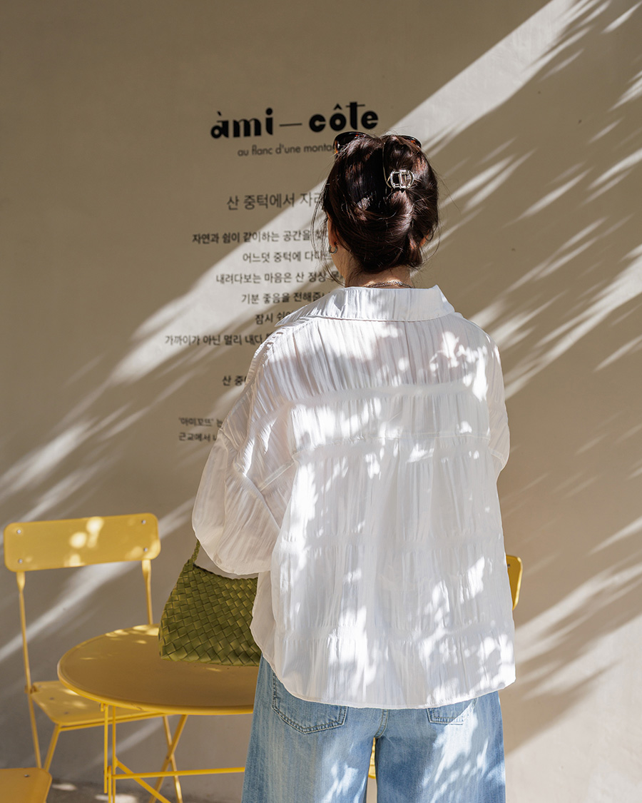과하지 않고 잔잔하게 들어간 링클 원단의 블라우스&자켓
