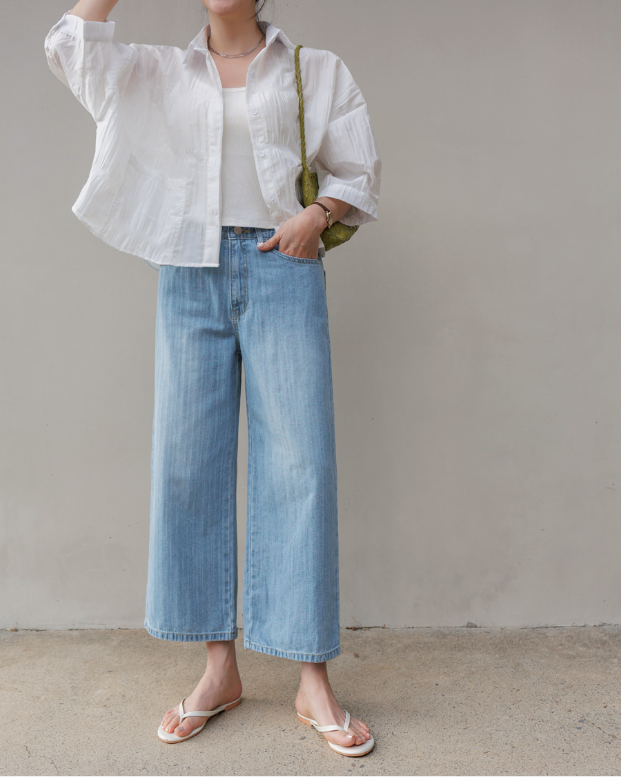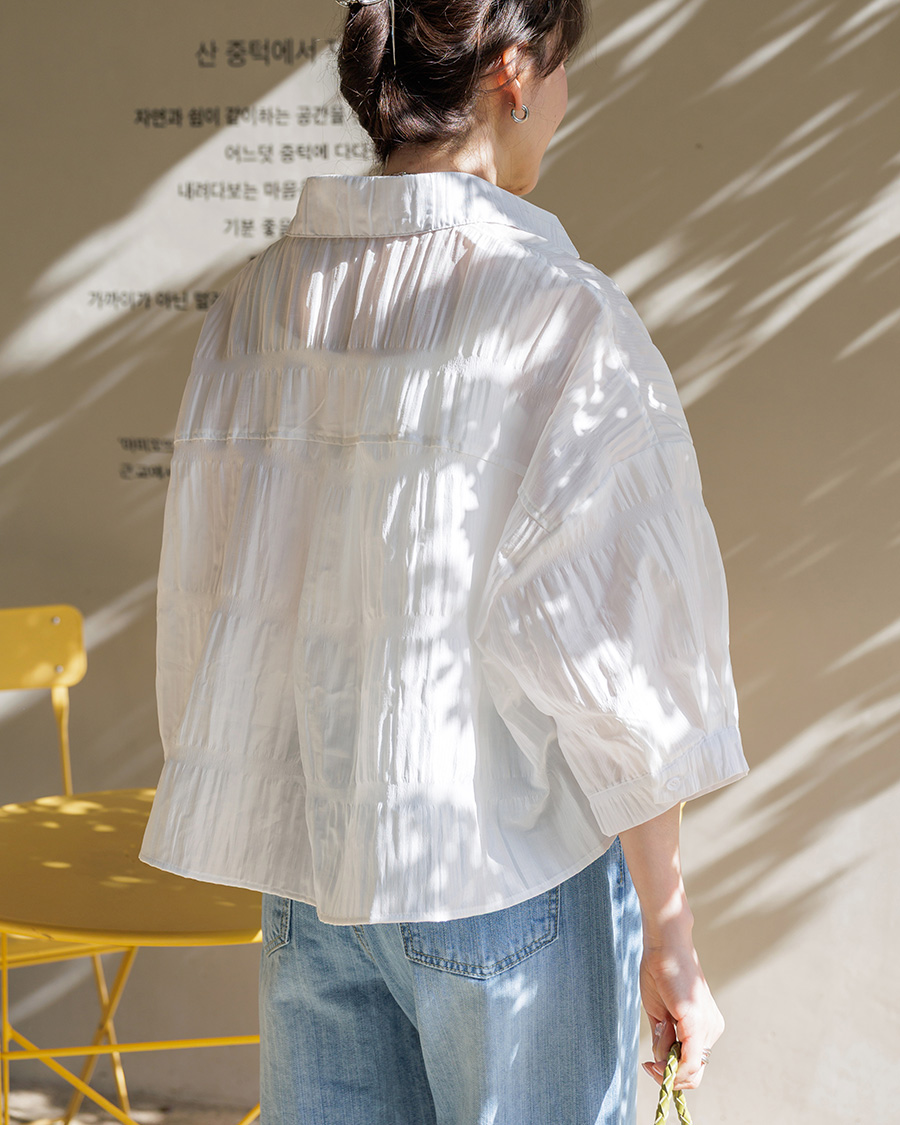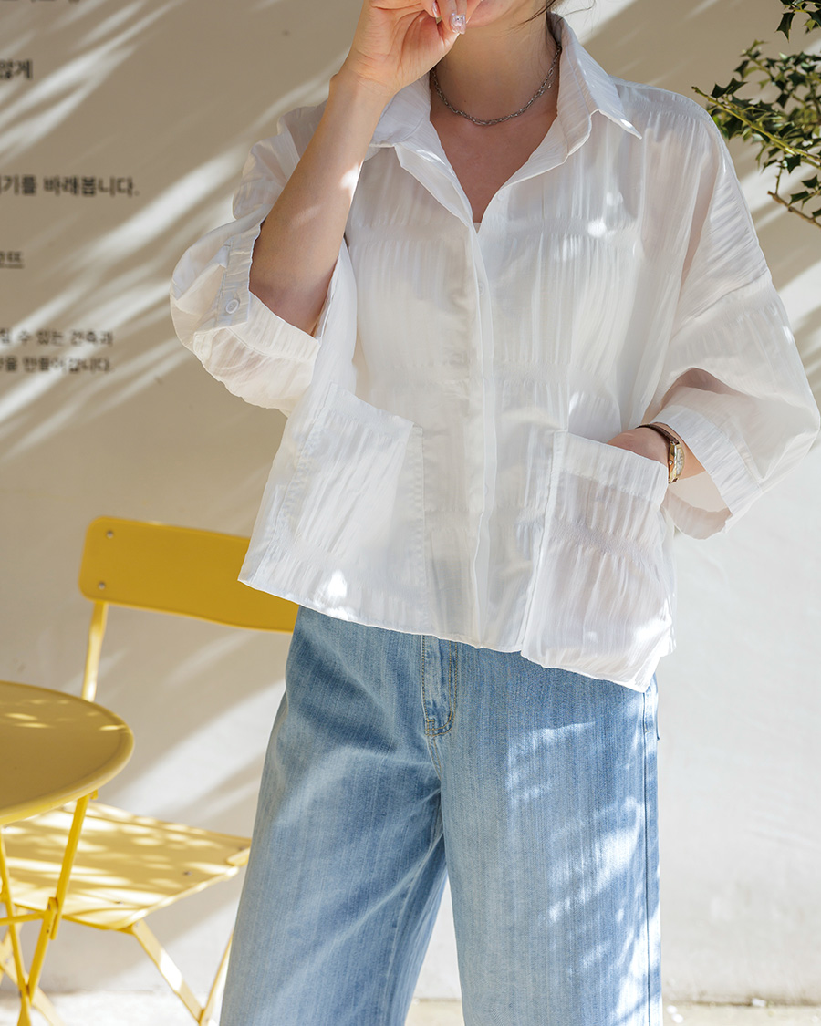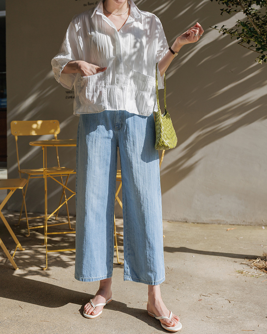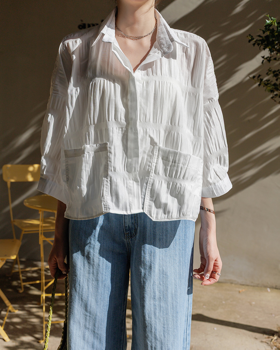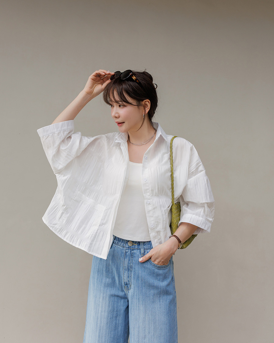 과하지 않고 잔잔하게 들어간 링클 원단의 블라우스&자켓