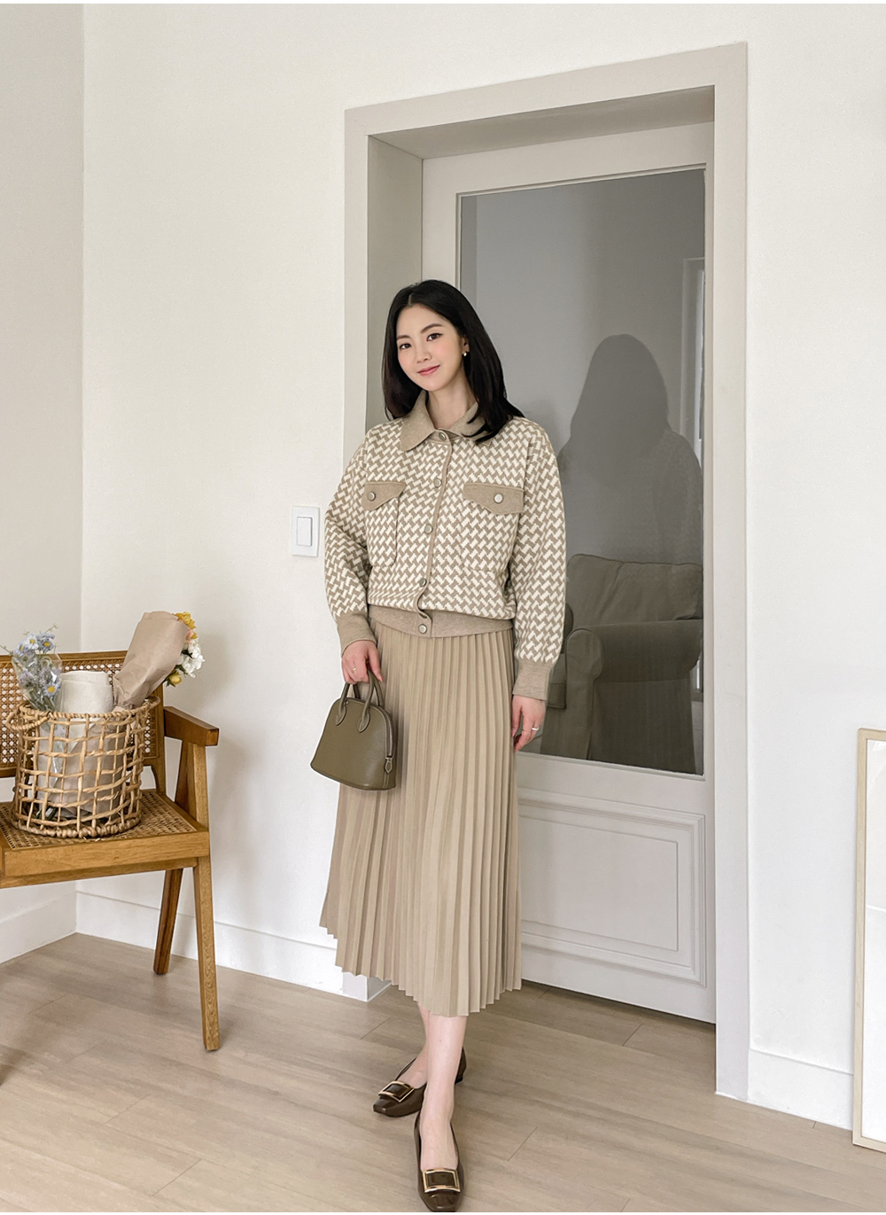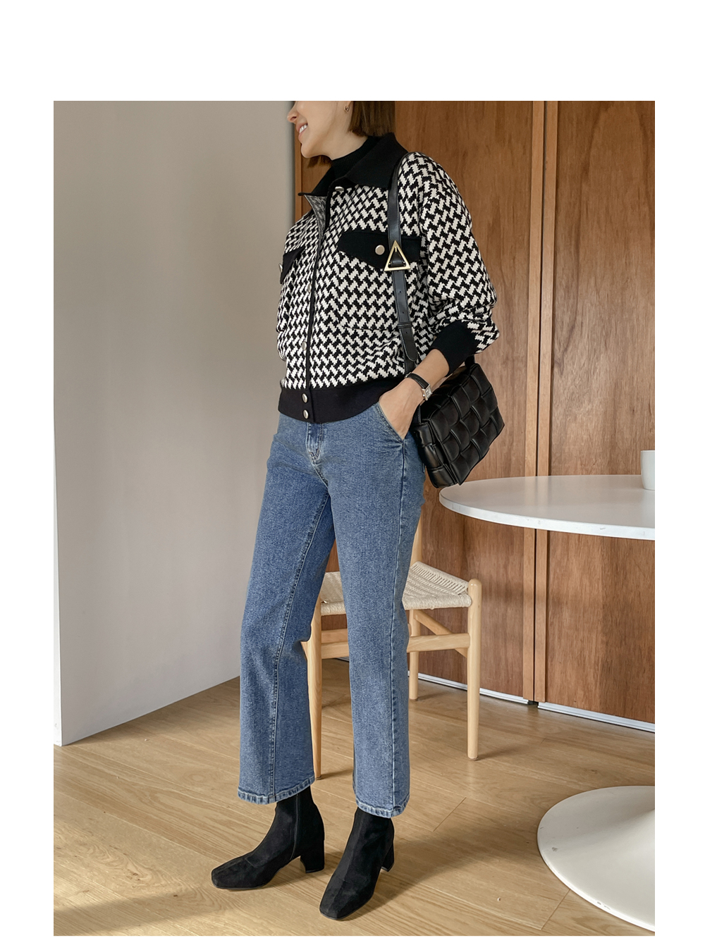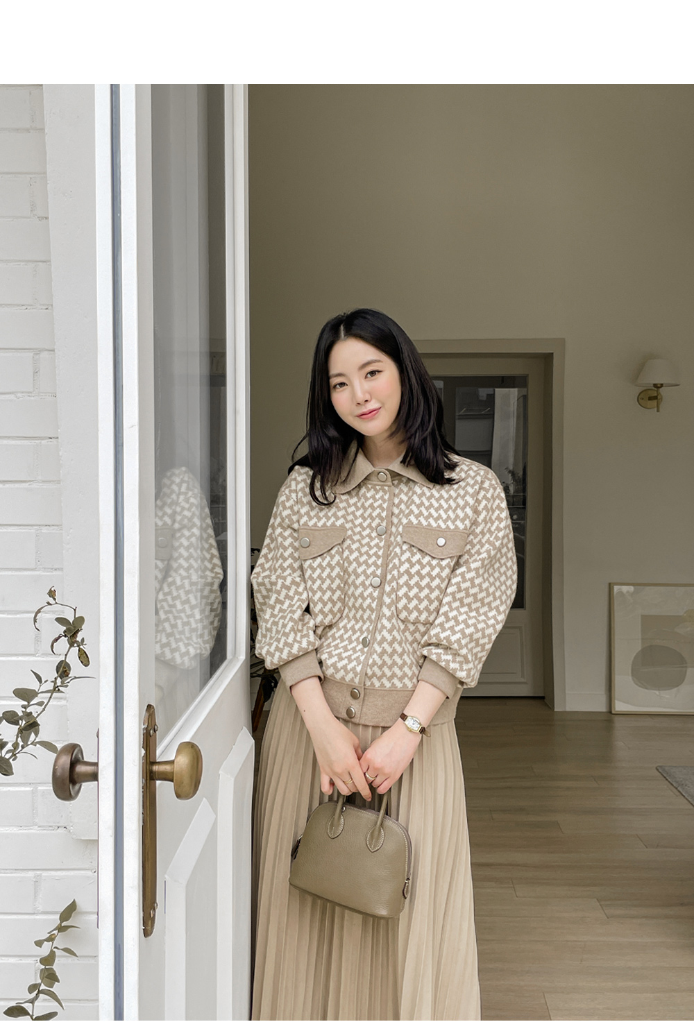 촘촘하게 잘 짜여진 자가드 니트 소재에