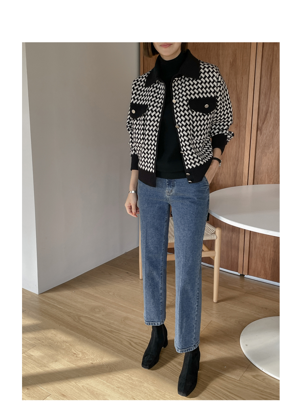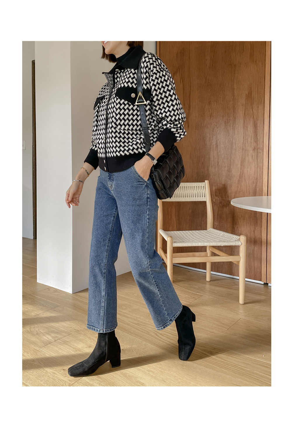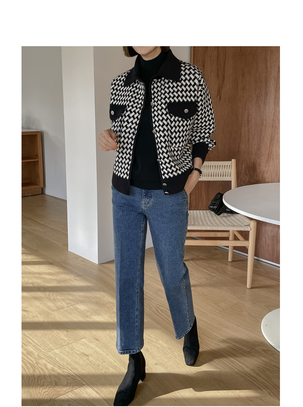 촘촘하게 잘 짜여진 자가드 니트 소재에